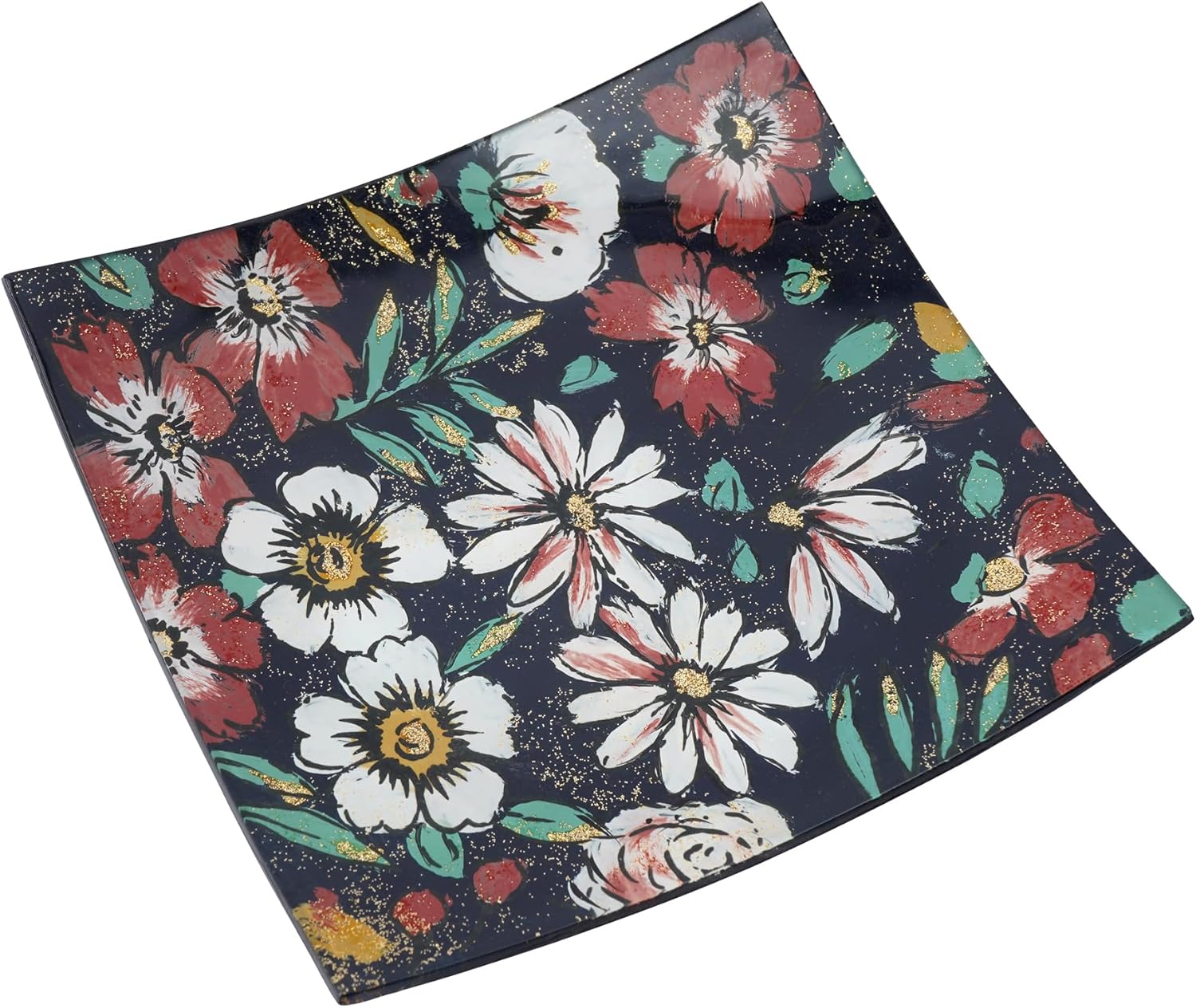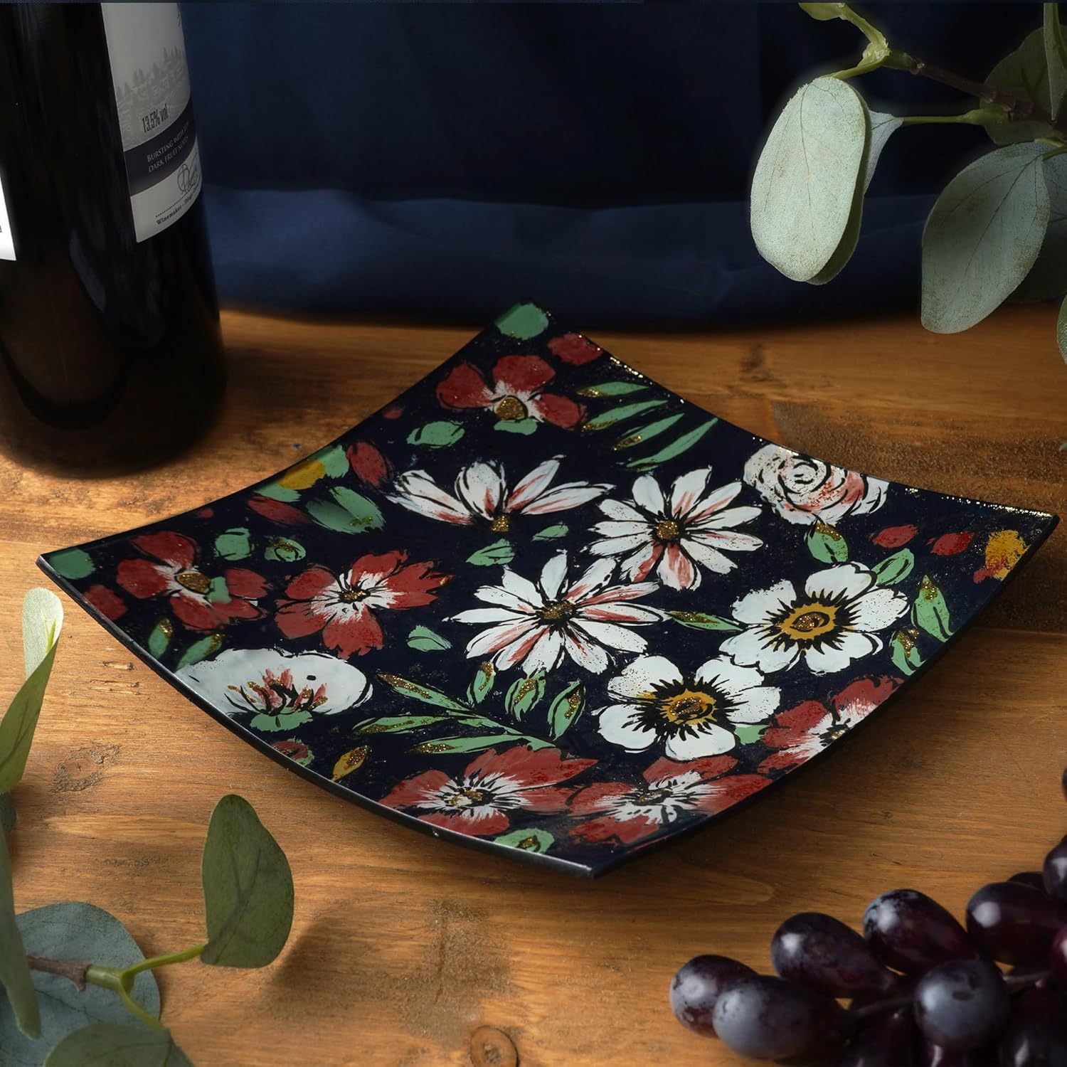 Twilight Bloom Glass Small Square Plate in Gift Box